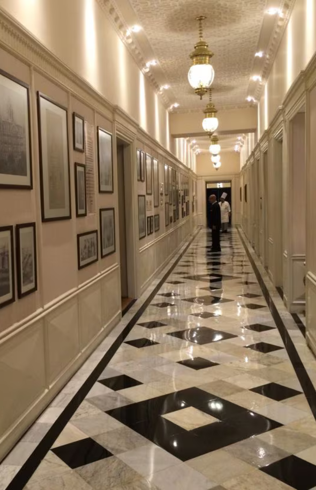 Marble corridors where quiet footsteps, soft lighting, and framed memories meet.​
