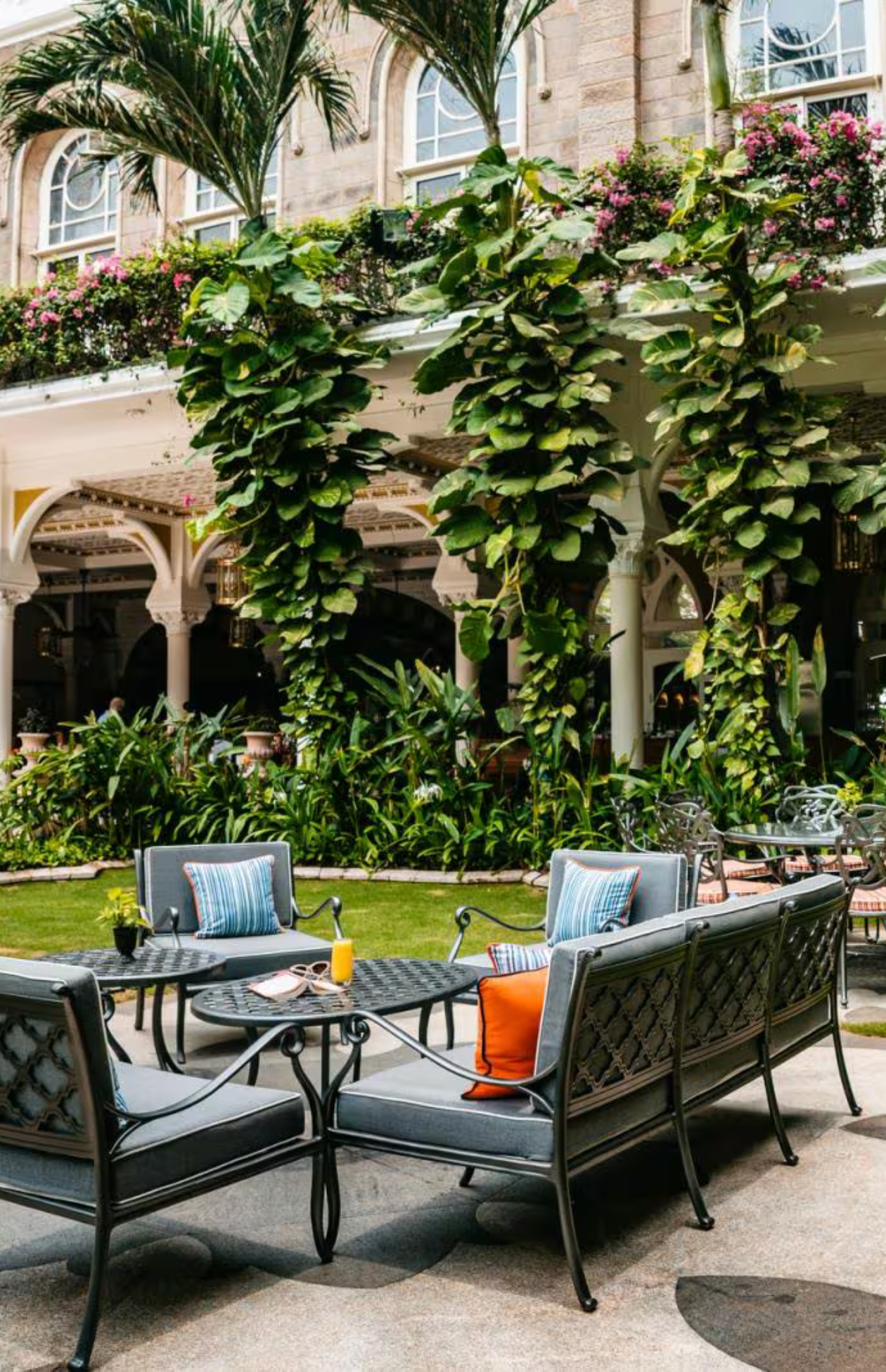 Courtyard mornings with palms overhead, birdsong, and relaxed al fresco conversations.​