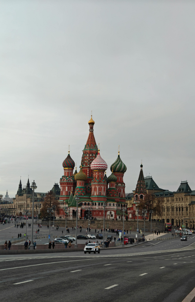 St. Basil’s Cathedral, built in the 16th century, is famous for its colourful onion-shaped domes, each uniquely patterned—no two are alike.